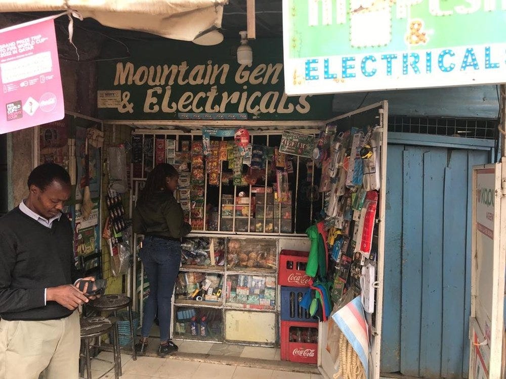 Who do we sell to? Our customers are poor Kenyans who usually spend 50% of their money on the types of products we sell - so they are extremely price sensitive. These customers place orders with agents, and we deliver to the agents the next day (saving last mile delivery costs because one agent might order for 10 customers, and we only have to make one delivery to that agent for all 10 customers).