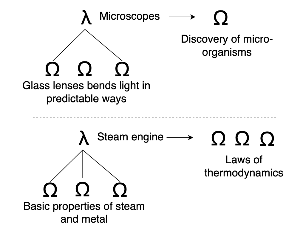 λ-knowledge can also create new Ω-knowledge. Practical technology generates new understanding of the world.