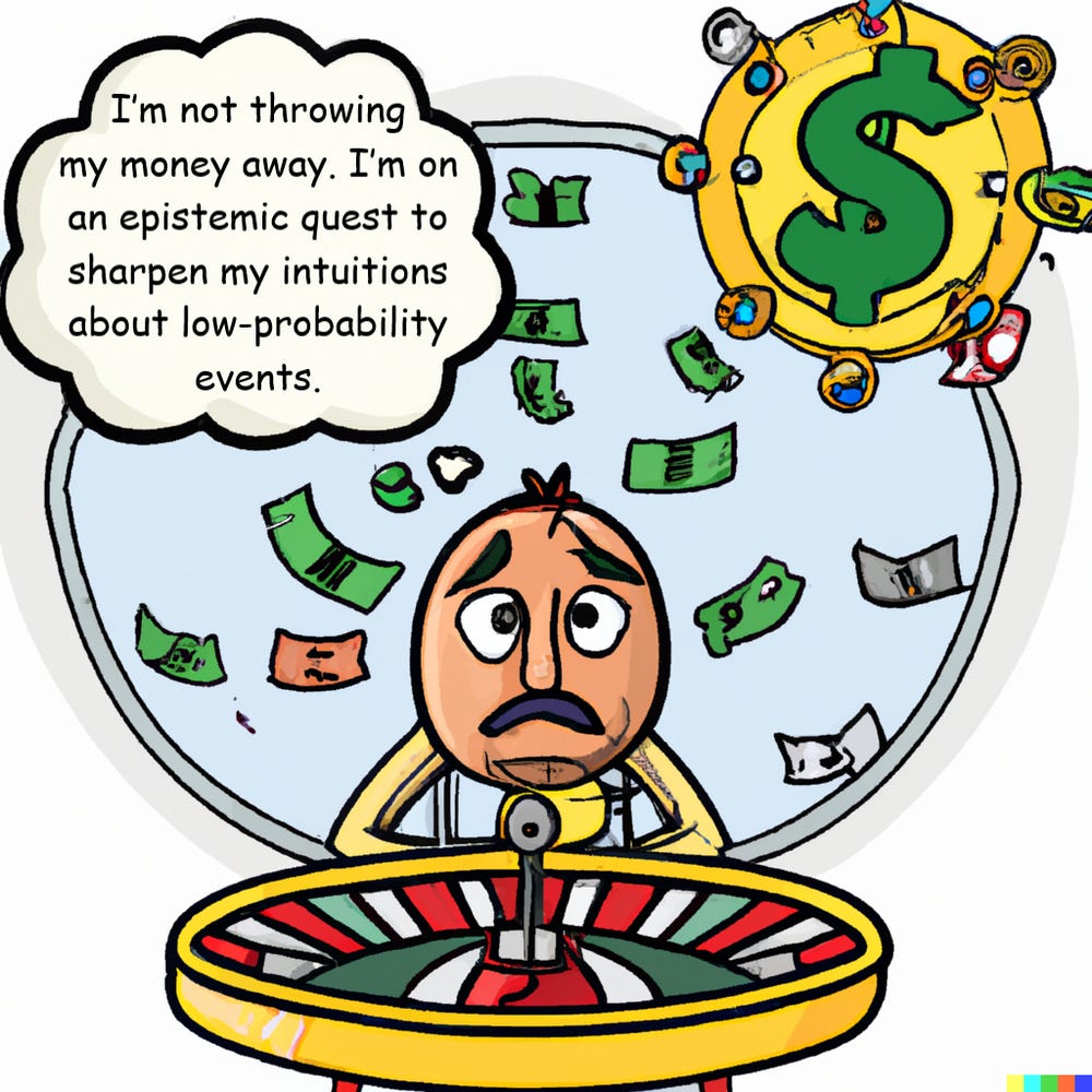 So now I have a good excuse to keep going to the casino. I’m not throwing my money away. I’m on an epistemic quest to sharpen my intuitions about low-probability events.